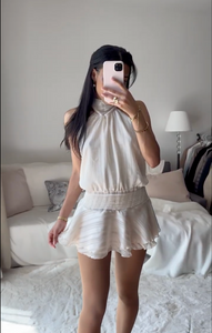 Yasmina Mini Dress förkroppsligar lekfull elegans med sina fina volangdetaljer och smickrande snitt. Klänningen är designad med en axelbandslös eller off-shoulder halsringning, en smockad eller figurnära livdel samt en svängande minikjol, vilket gör den perfekt för varma väderevenemang och sommarfester. Den är lätt och bekväm, och klänningen faller vackert från brunch till kvällsaktiviteter utan ansträngning.